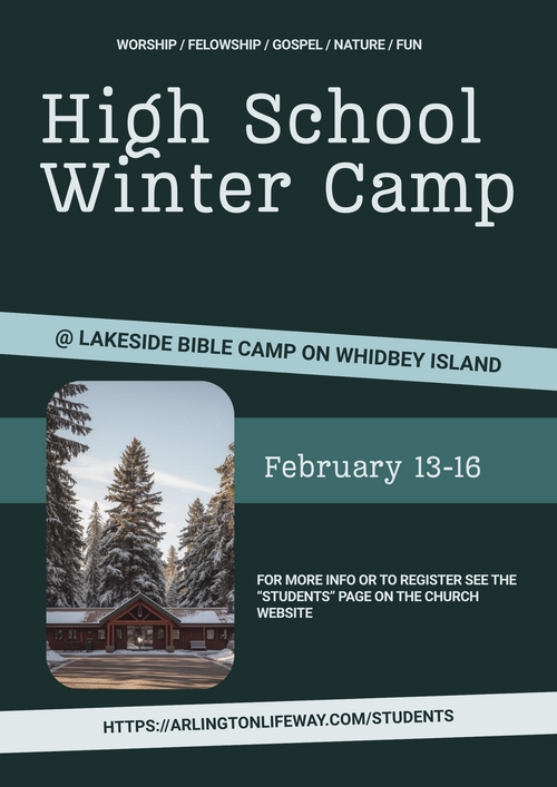 Join us for our High School (9th-12th grade) winter camp on February 13-16, 2026. We will be heading to Lakeside Bible Camp on Whidbey Island for a three-day weekend of worship, digging into scripture, unplugging, fellowship and a lot of fun.